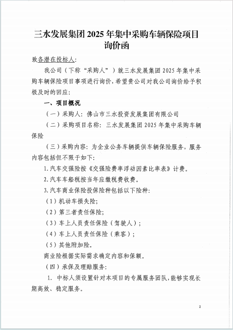 williamhill中文官网集团2025年集中采购车辆保险项目询价文件