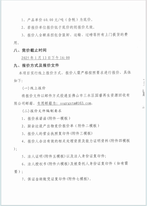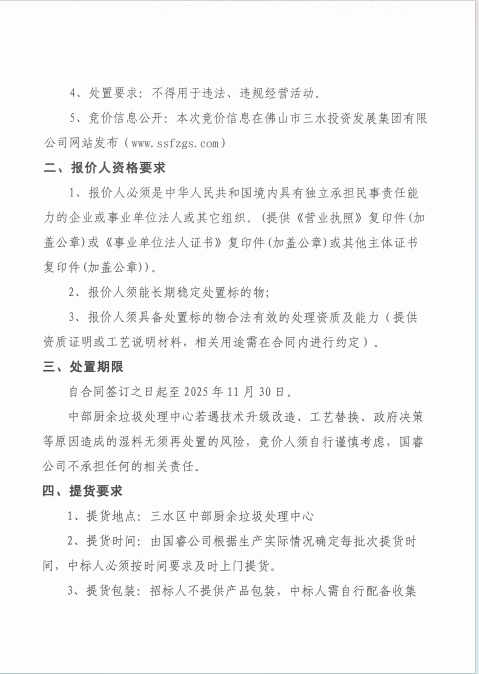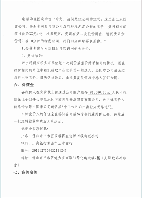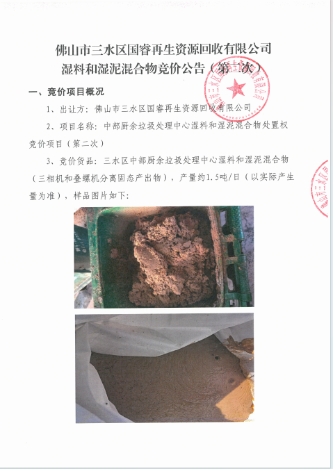 佛山市三水区国睿再生资源回收有限公司湿料和湿泥混合物竞价公告(第二次)