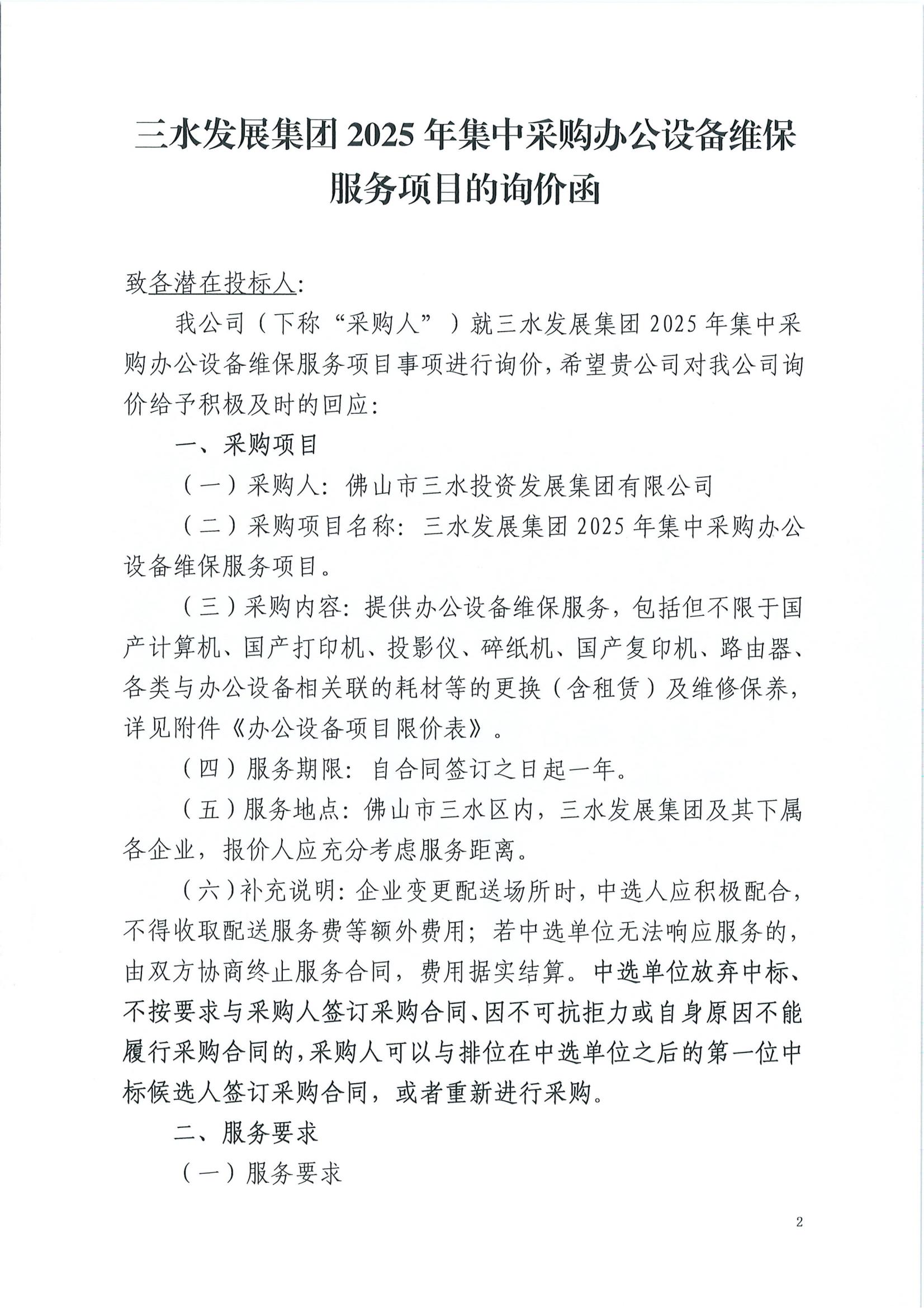 williamhill中文官网集团2025年集中采购办公设备维保服务项目询价文件