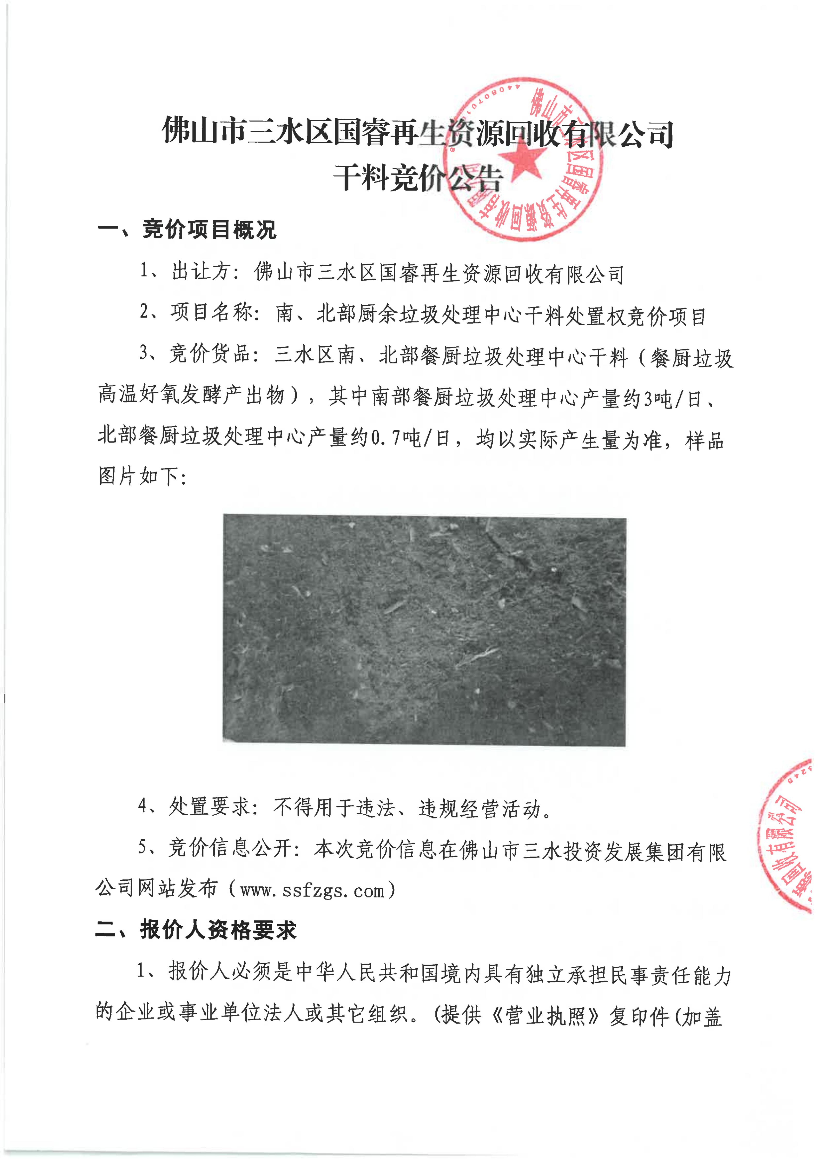 附件1-7:国睿公司南、北部厂干料竞价公告