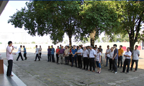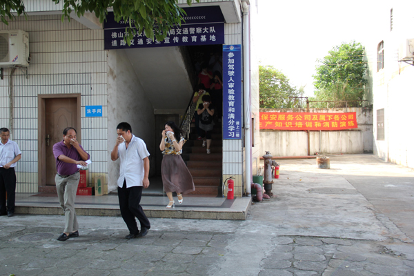 演练模拟永安培训部考试大楼二楼发生火情,大楼内有数名员工和学员正在考试学习,员工发现后立即启动应急预案,拨打119报警以及向当值领导汇报情况。应急小组收到通知后立即赶往现场,电工组检查火场电源,作分区断电,同时检查应急照明和疏散指示灯的运作情况;警戒疏散组引导楼上被困人员按规定路线用湿毛巾捂鼻有序逃生,同时对火场进行警戒,严格控制大门的进出人员及车辆;抢险组则利用配备的灭火器对初期火灾进行扑灭;人员救护组为现场伤员进行初步包扎,等待进一步救援。接下来,员工通过学习和操作相结合的方式,掌握灭火器和消防水带的使用方法与技巧,提高职工火情处理能力。整个演练过程紧张、有序。