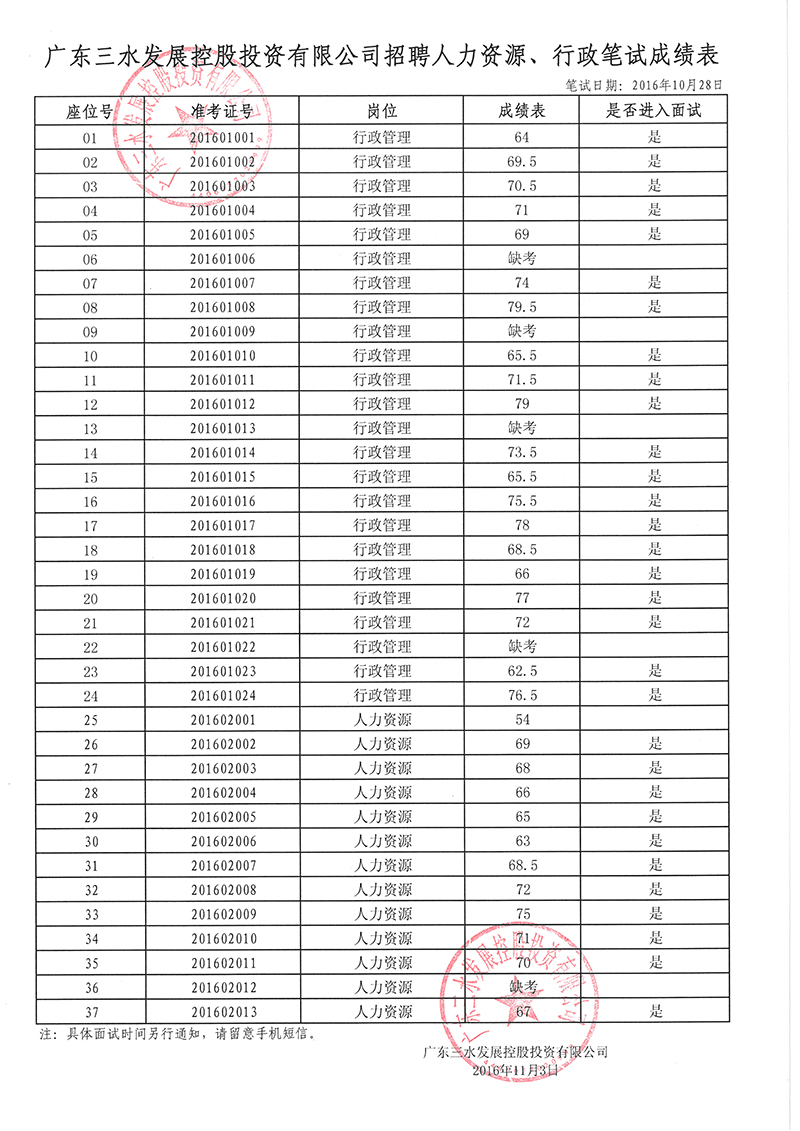 广东williamhill中文官网控股投资有限公司招聘人力资源和行政人员笔试成绩公示