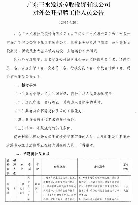 广东williamhill中文官网控股投资有限公司对外公开招聘工作人员公告