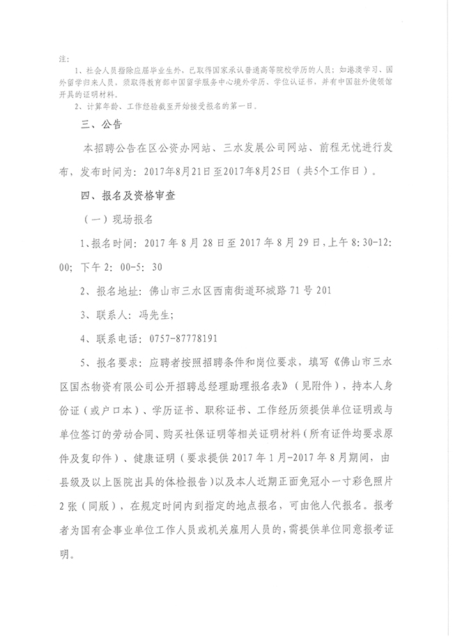 附件:佛山市三水区国杰物资有限公司公开招聘总经理助理报名表