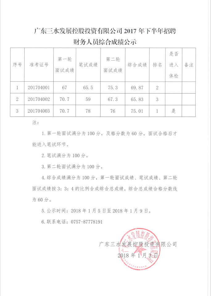 广东williamhill中文官网控股投资有限公司2017年下半年招聘财务人员综合成绩公示
