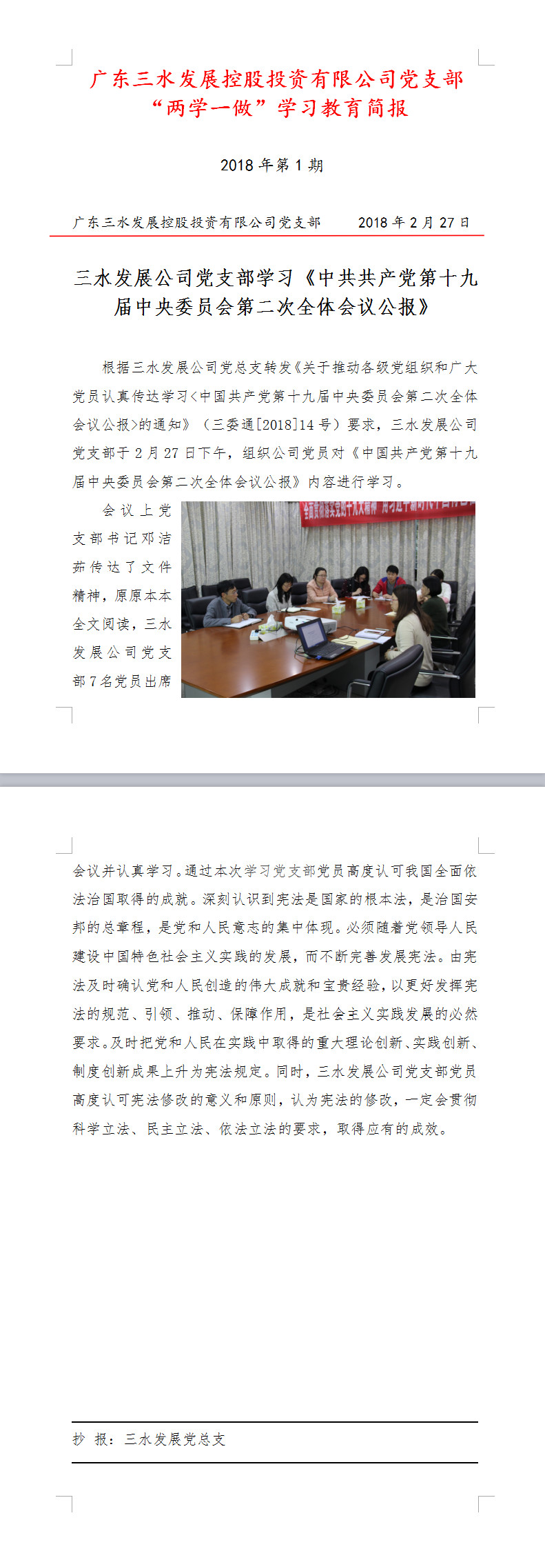 williamhill中文官网公司“两学一做”学习教育简报第1期——学习《中共共产党第十九届中央委员会第二次全体会议公报》