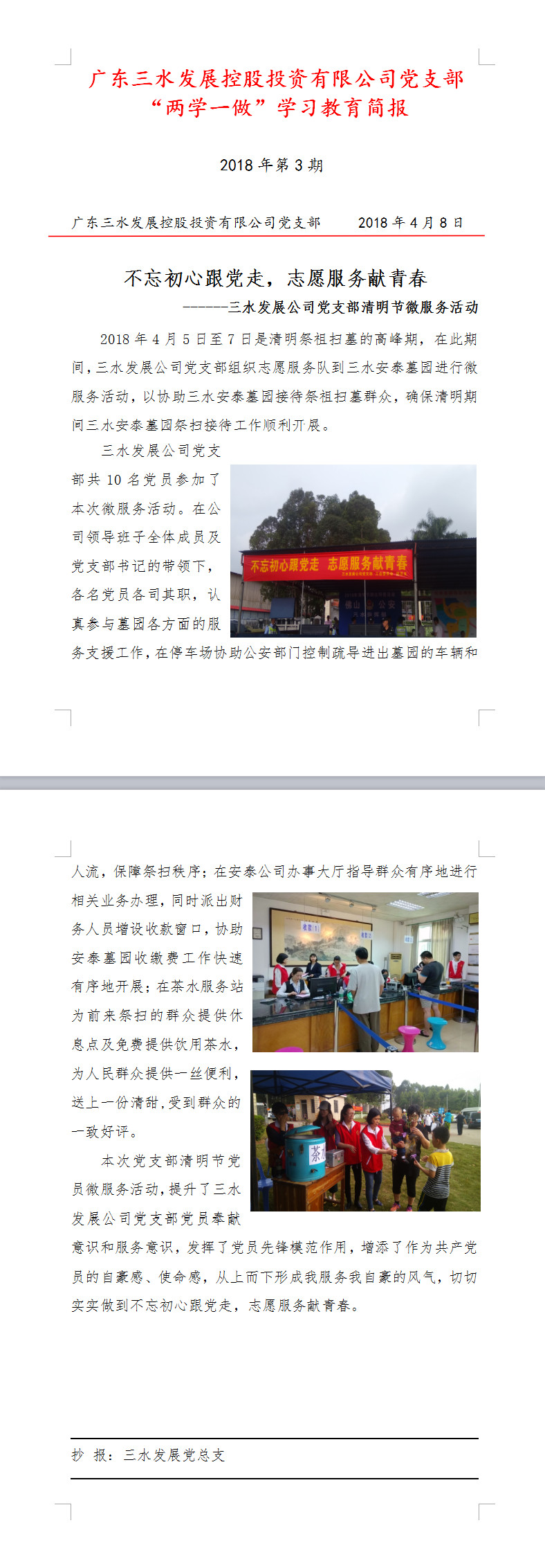 williamhill中文官网公司党支部“两学一做”学习教育简报第3期——不忘初心跟党走,志愿服务献青春