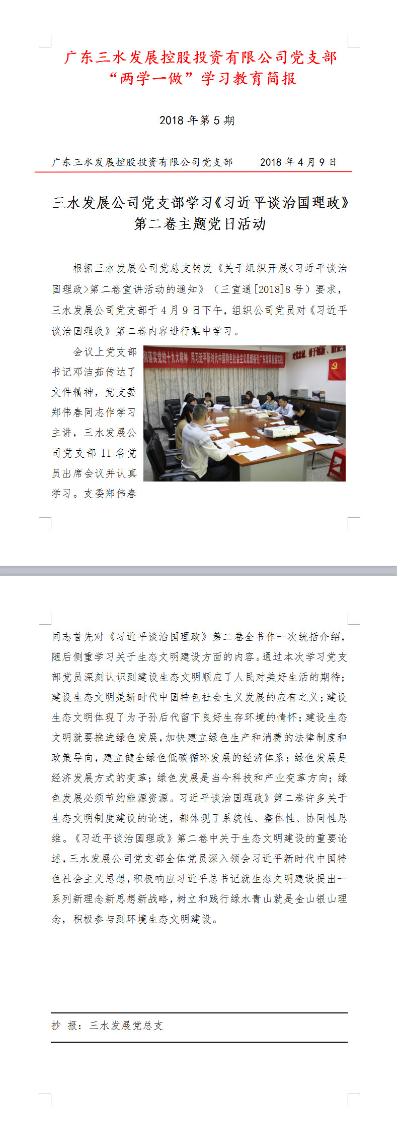 williamhill中文官网公司“两学一做”学习教育简报第5期——学习《习近平谈治国理政》第二卷主题党日活动