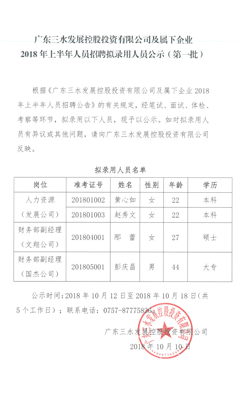 广东williamhill中文官网控股投资有限公司及属下企业2018年上半年人员招聘拟录用人员公示(第一批)