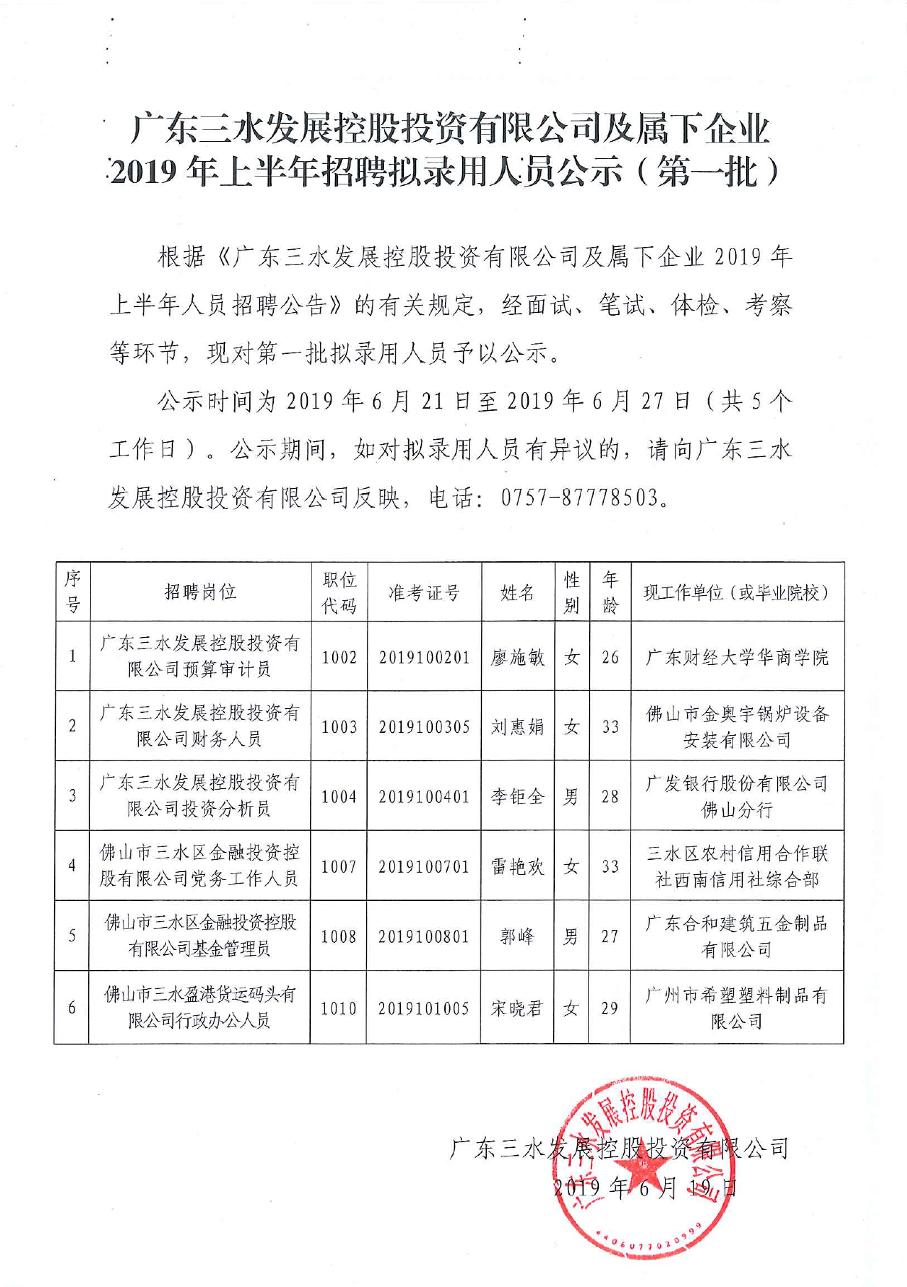广东williamhill中文官网控股投资有限公司及属下企业2019年上半年招聘拟录用人员公示(第一批)