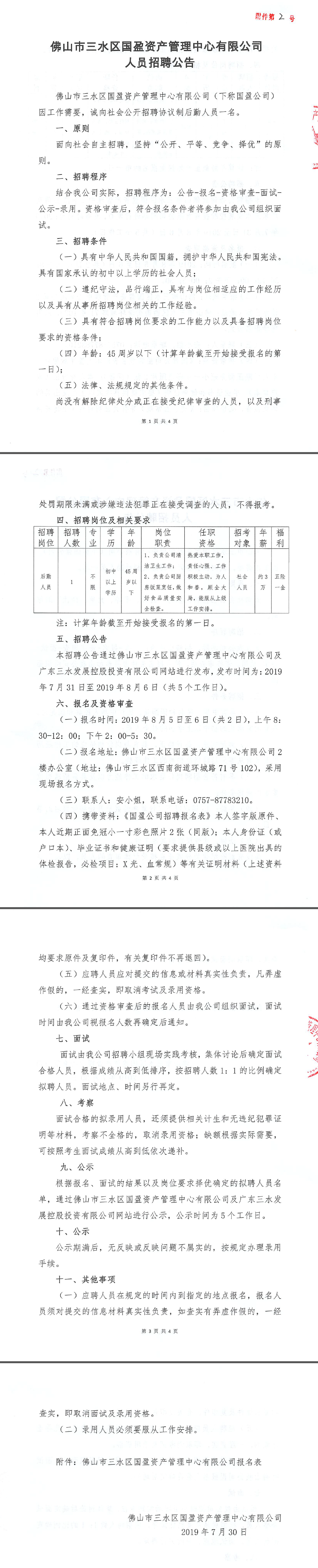 佛山市三水区国盈资产管理中心有限公司人员招聘公告