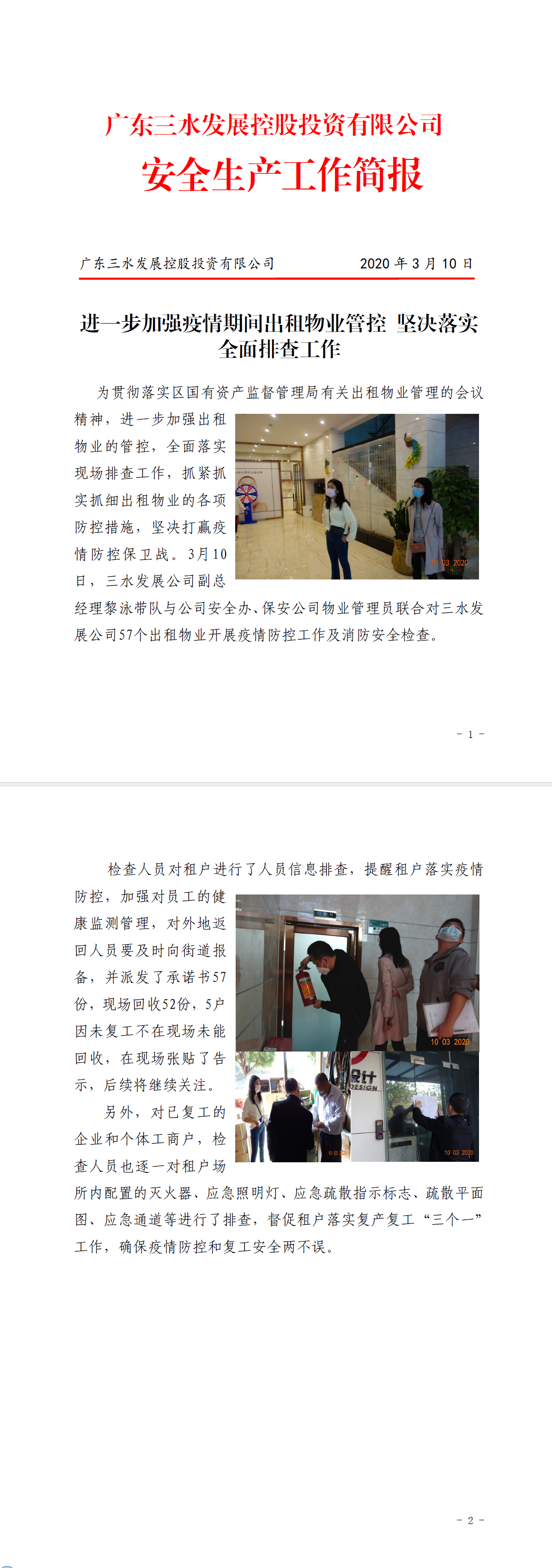 williamhill中文官网安全生产工作简报(进一步加强疫情期间出租物业管控 坚决落实全面排查工作)