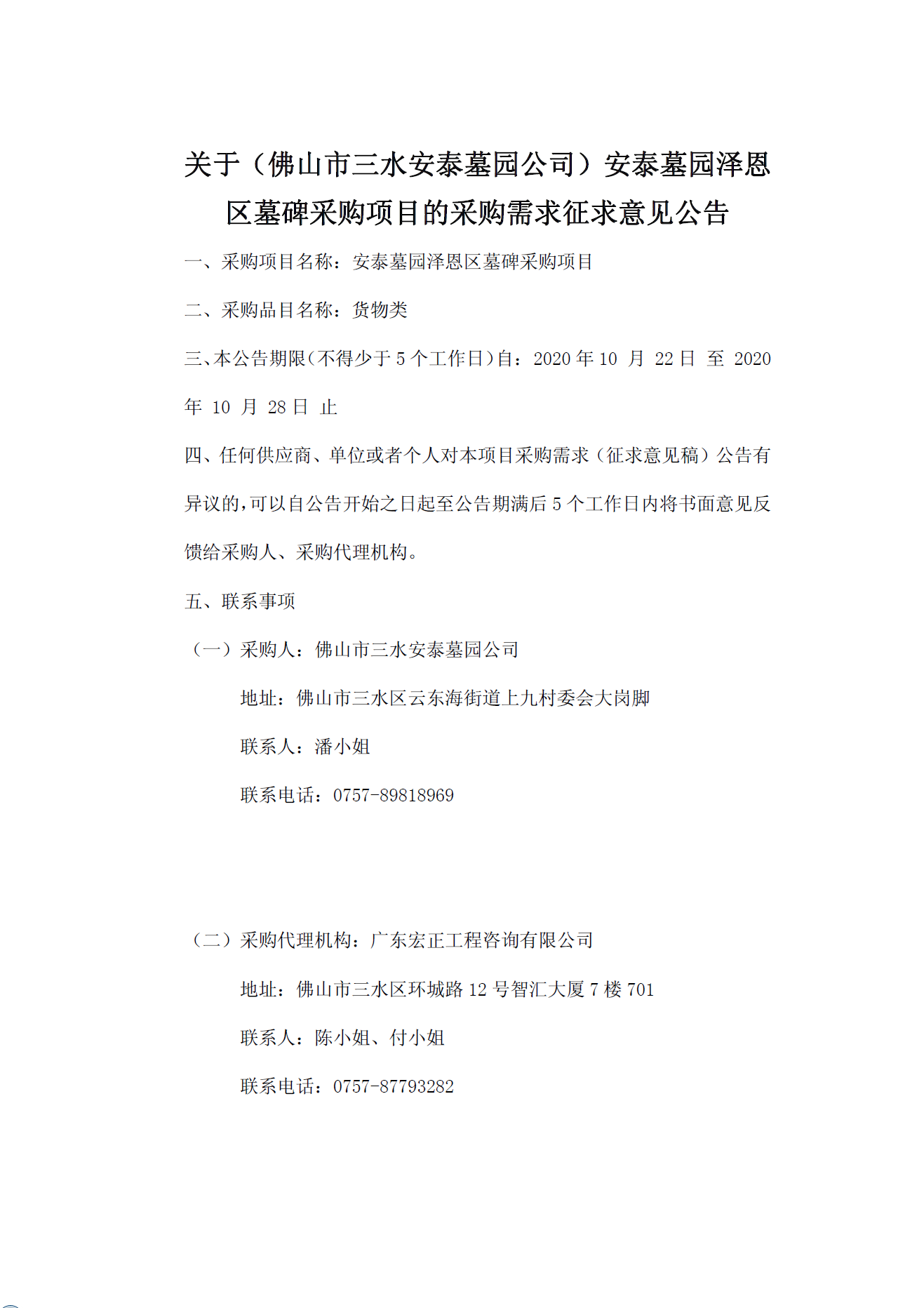 安泰墓园泽恩区墓碑采购项目——意见征集稿(定稿)20201020
