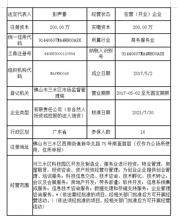 佛山市三水区淼才投资有限公司工商注册登记等企业基本信息