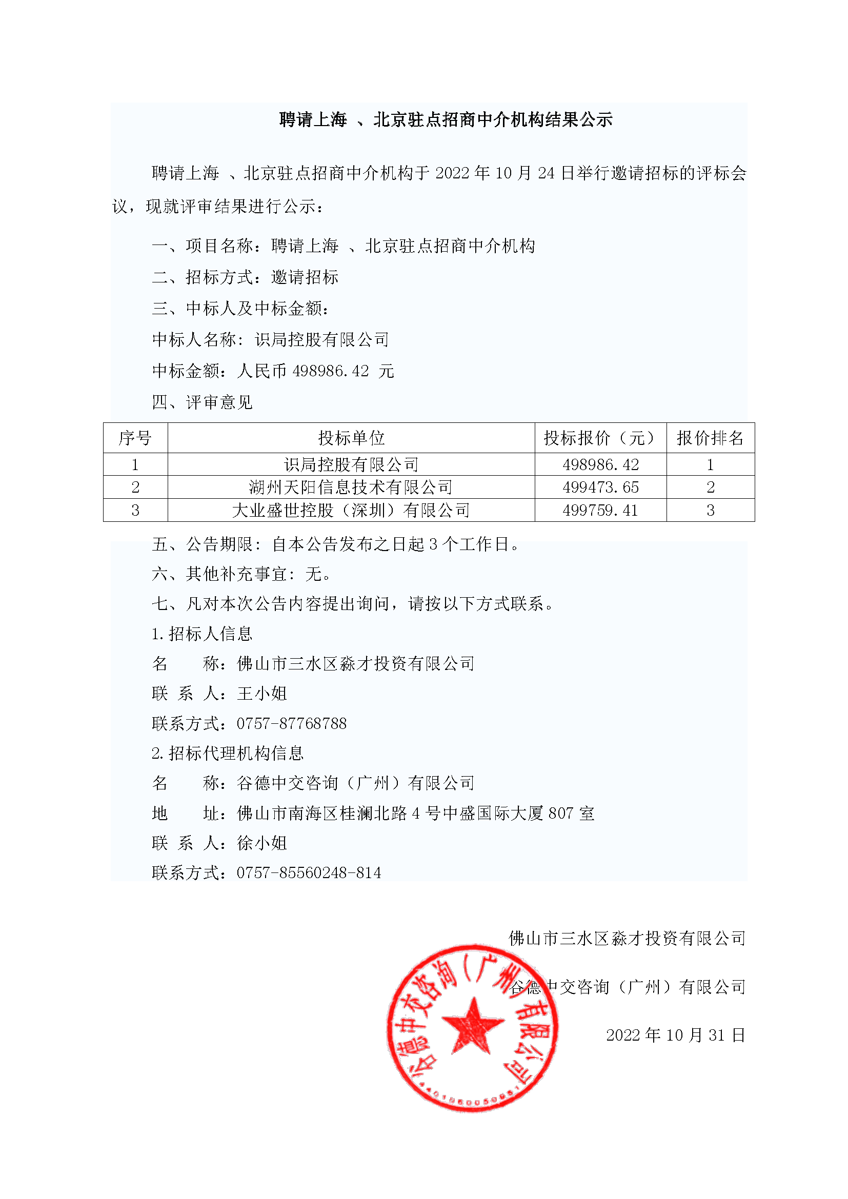 淼才公司聘请上海 、北京驻点招商中介机构结果公示