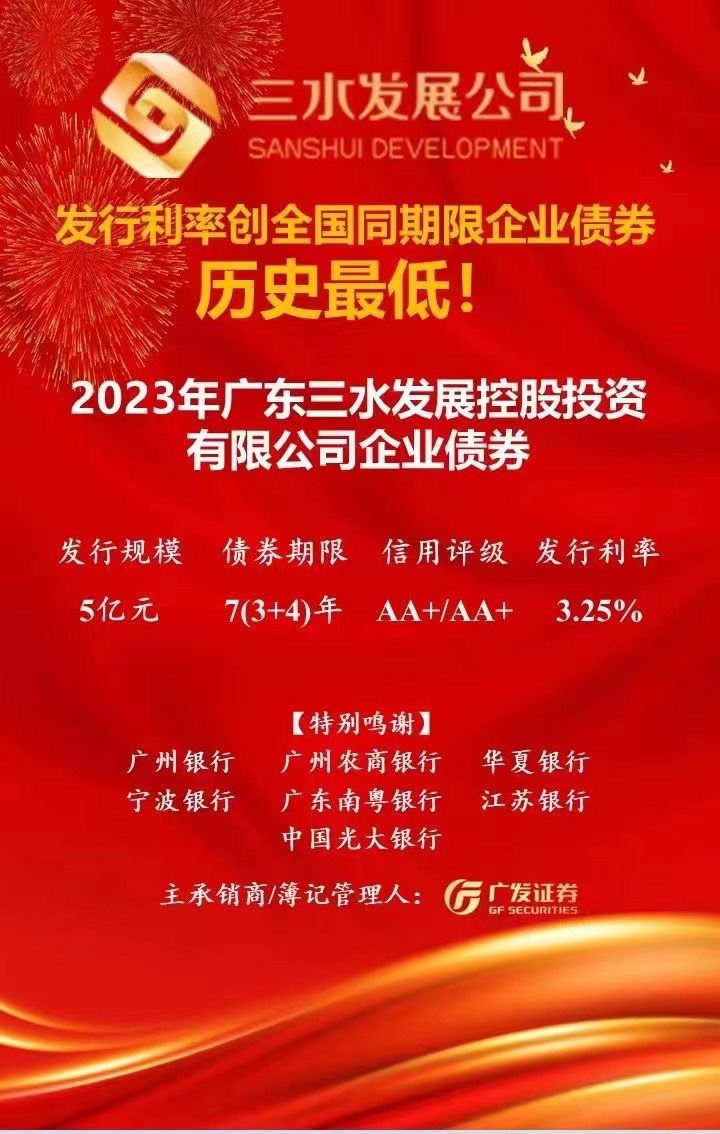 本次债券的成功发行,迈出公司从传统融资方式向市场化融资方式转变的关键一步,进一步提升了三水国企在资本市场的影响力和知名度,促进国有资产保值增值,为国企的做大做强提供强力资金保障,助力项目顺利建设,为努力打造三水高质量发展新增长极作出国企贡献、彰显国企担当。