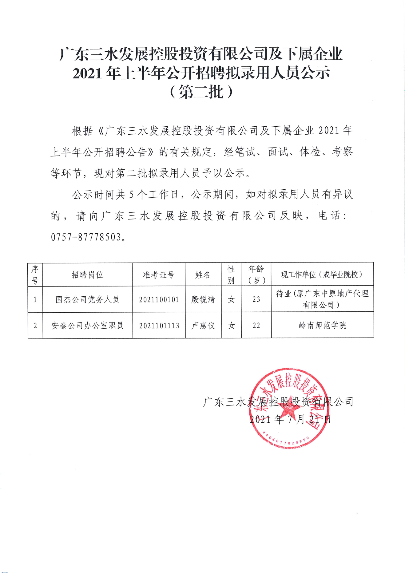 广东williamhill中文官网控股投资有限公司及下属企业2021年上半年公开招聘拟录用人员公示(第二批)