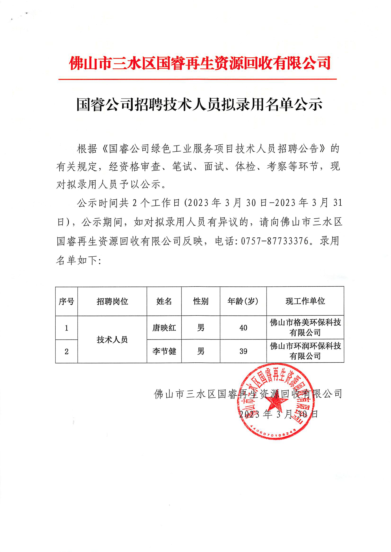 国睿公司招聘技术人员拟录用名单公示