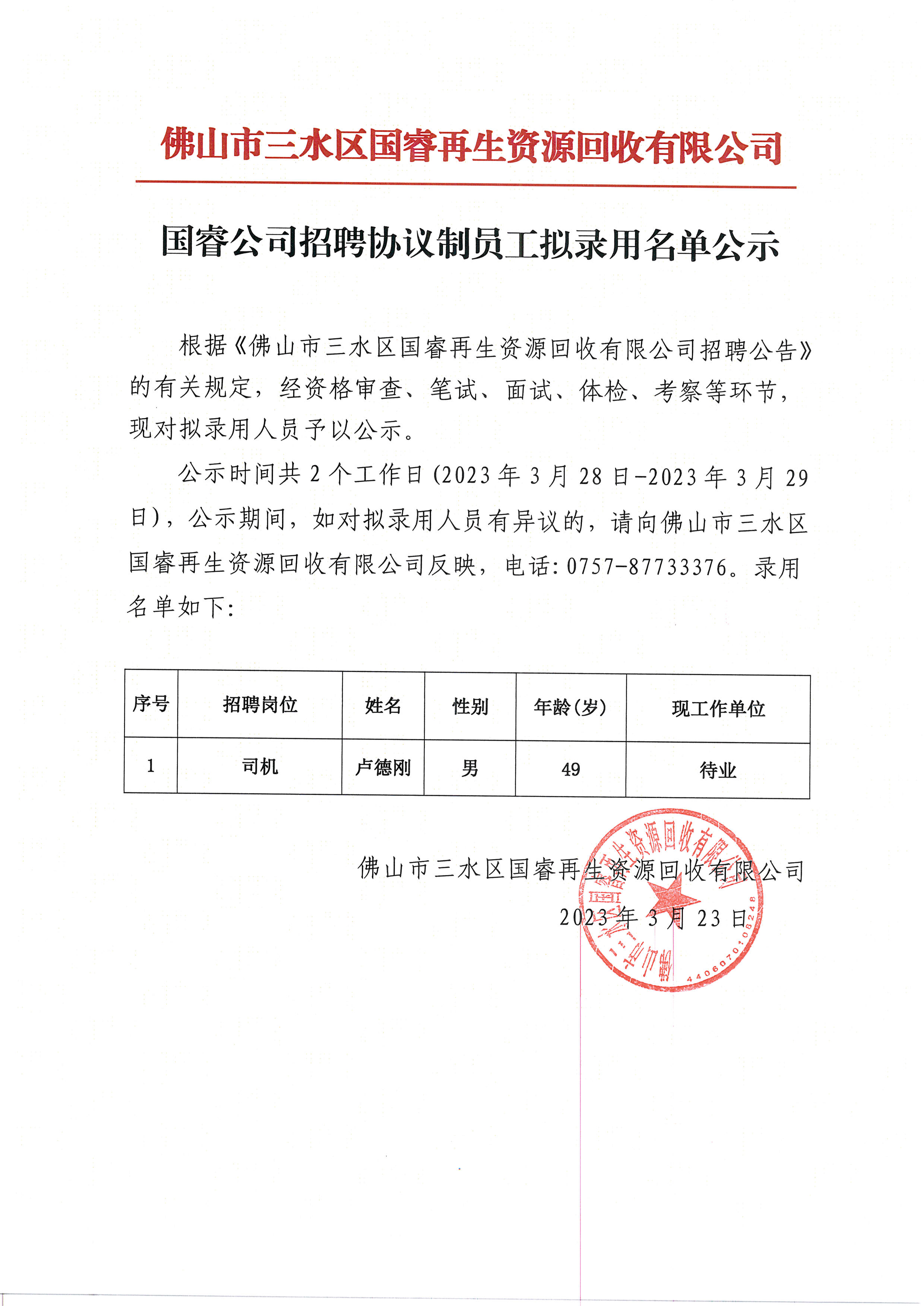 国睿公司招聘协议制员工拟录用名单公示