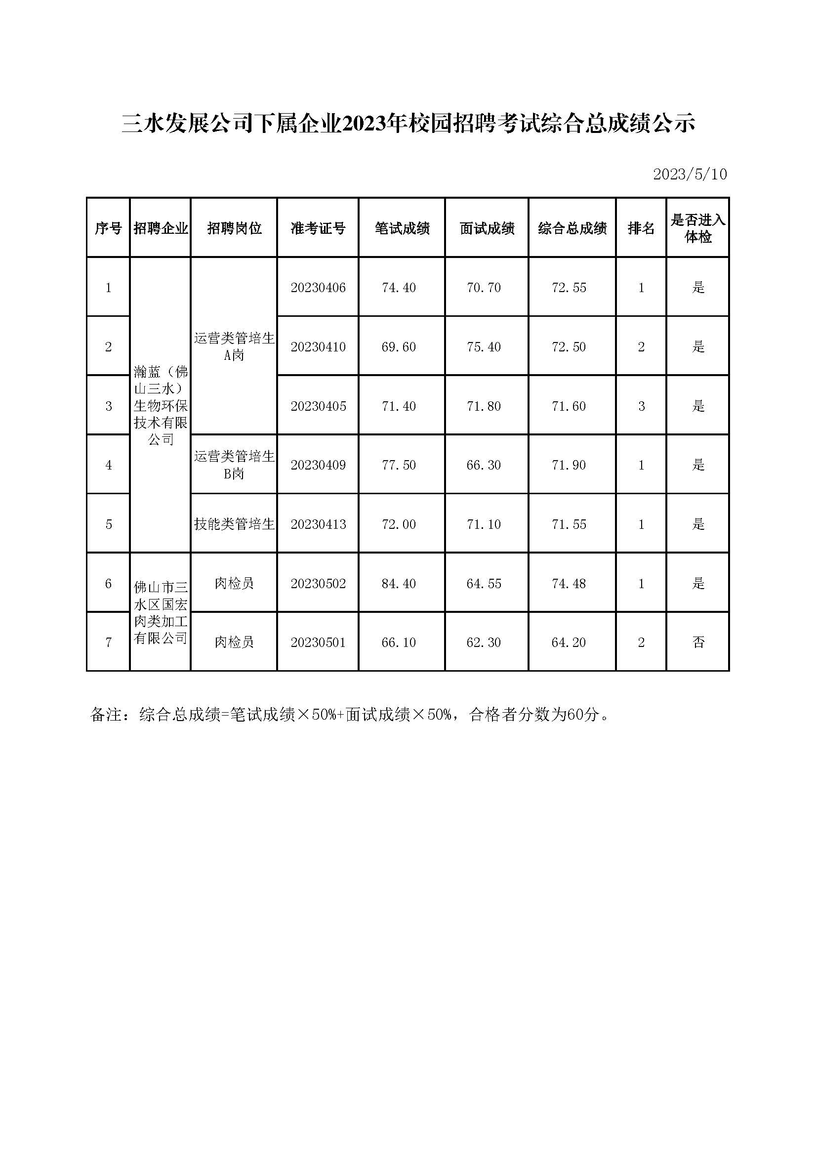 williamhill中文官网公司下属企业2023年校园招聘考试综合总成绩公示
