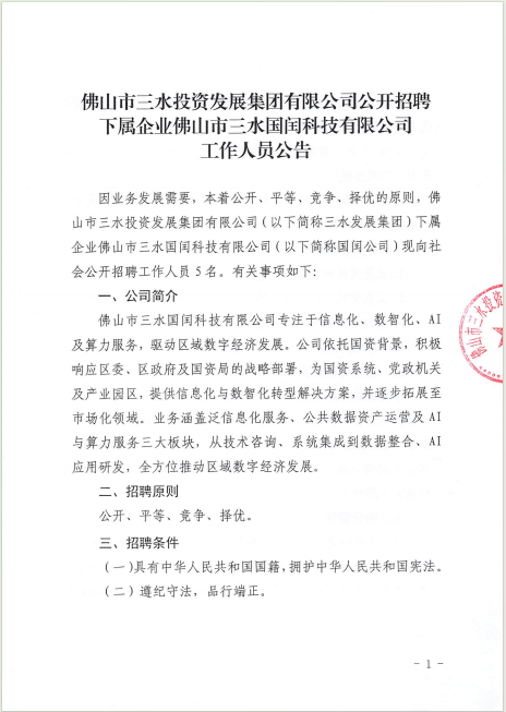 附件1.williamhill中文官网公开招聘下属企业佛山市三水国闰科技有限公司工作人员岗位表