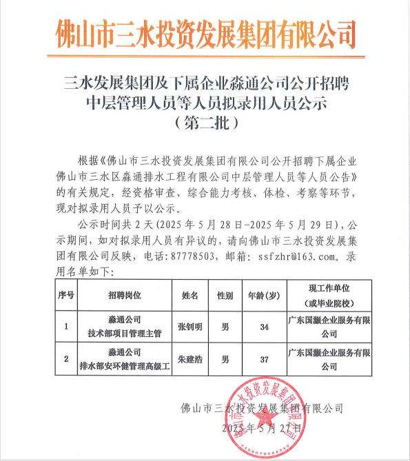 williamhill中文官网集团及下属企业淼通公司公开招聘中层管理人员等人员拟录用人员公示 (第二批)