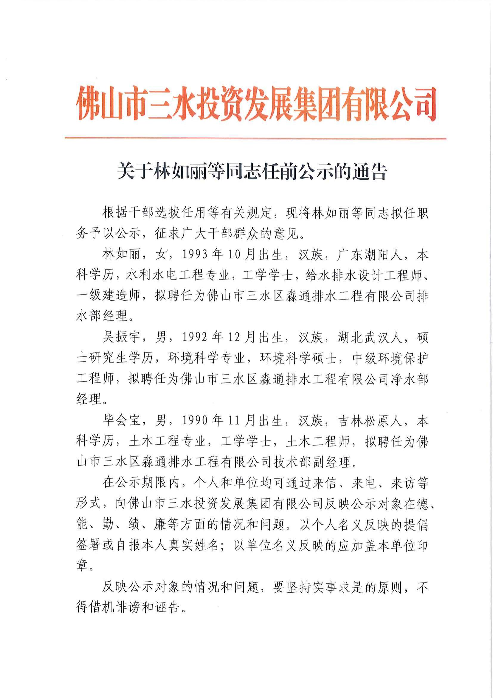 关于林如丽等同志任前公示的通告