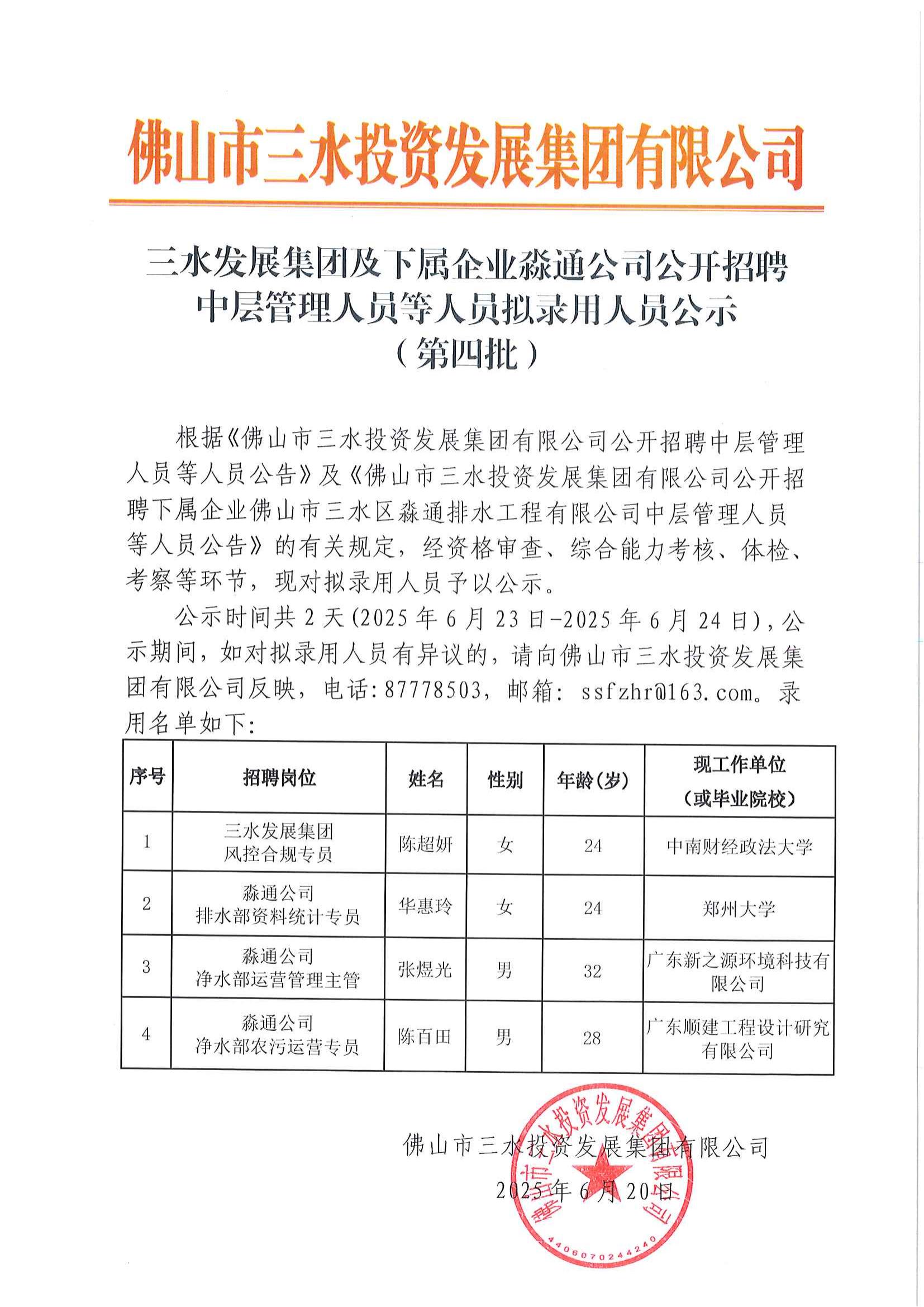 williamhill中文官网集团及下属企业淼通公司公开招聘中层管理人员等人员拟录用人员公示(第四批)