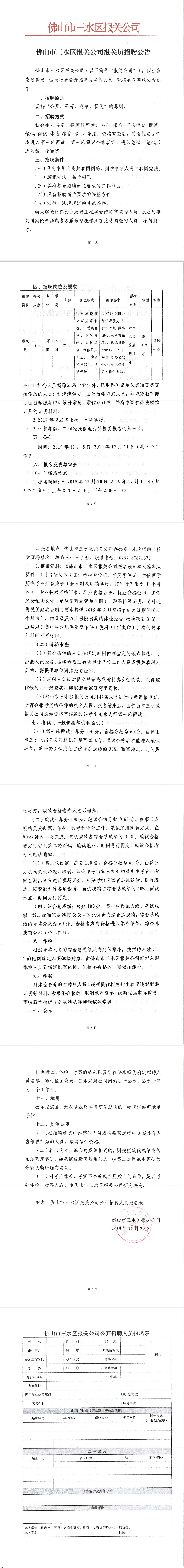 佛山市三水区报关公司公开招聘人员报名表
