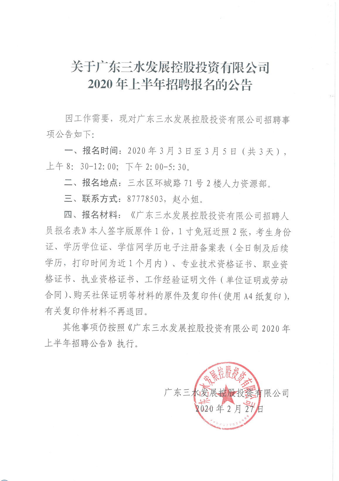 关于广东williamhill中文官网控股投资有限公司2020年上半年招聘报名的公告