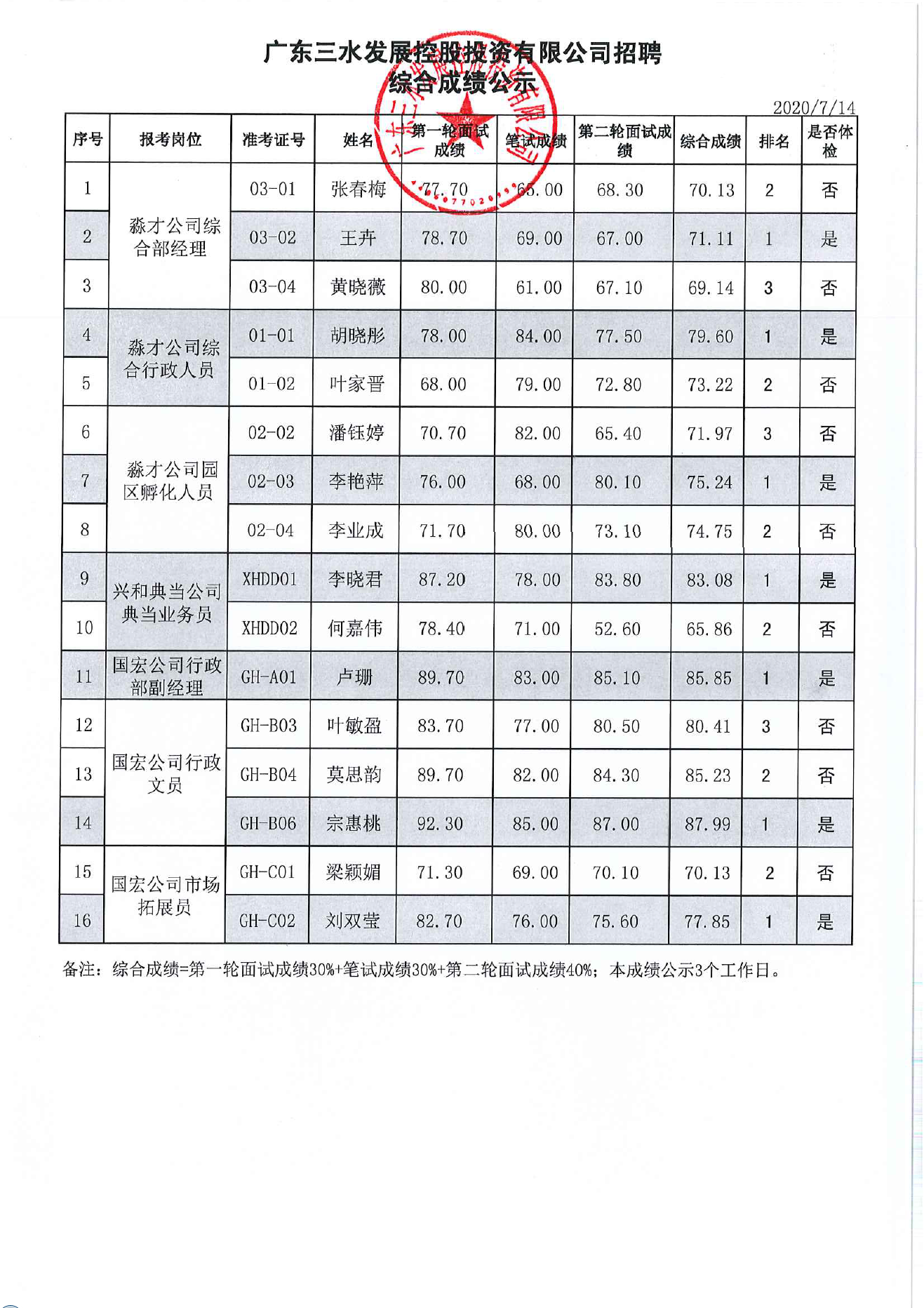 广东williamhill中文官网控股投资有限公司招聘综合成绩公示