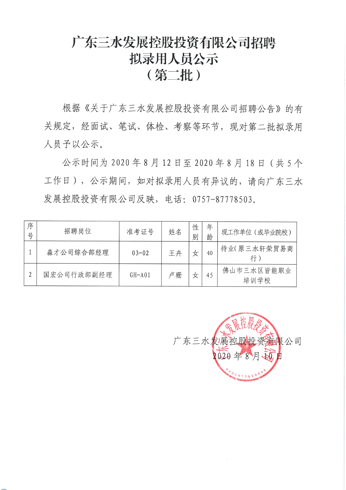 广东williamhill中文官网控股投资有限公司招聘拟录用人员公示(第二批)